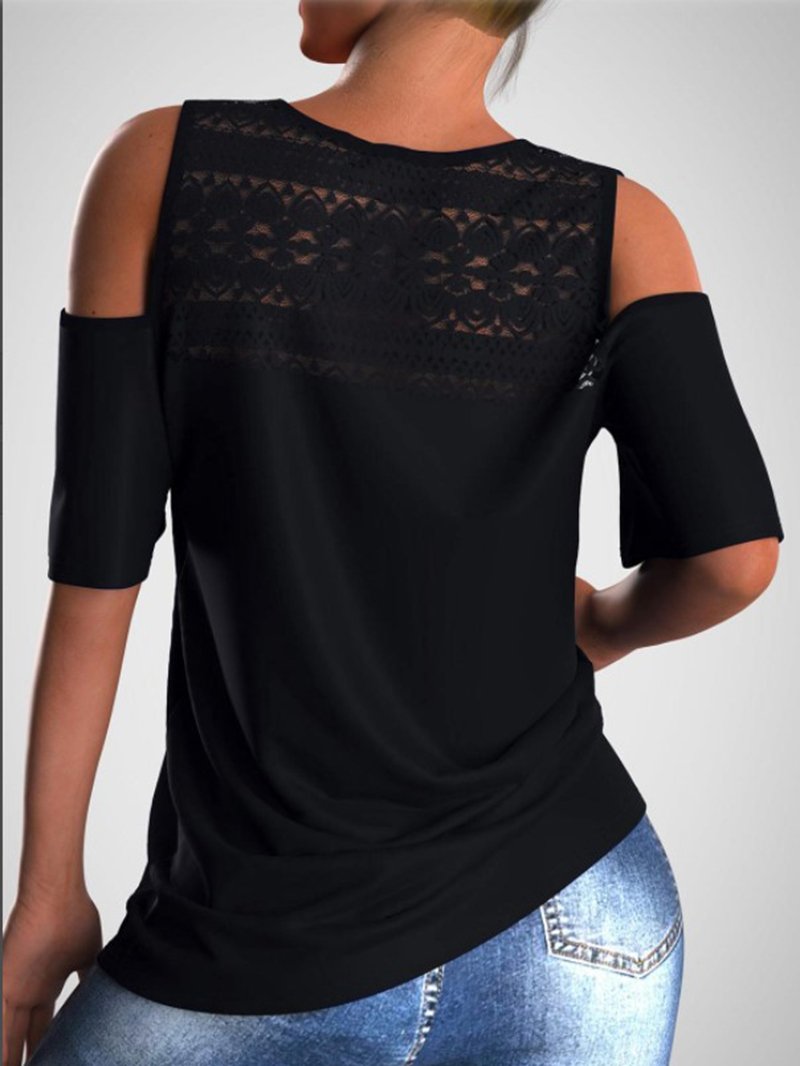 Sunflower Print Hollow Halter Short-sleeved V-neck T-shirt Top